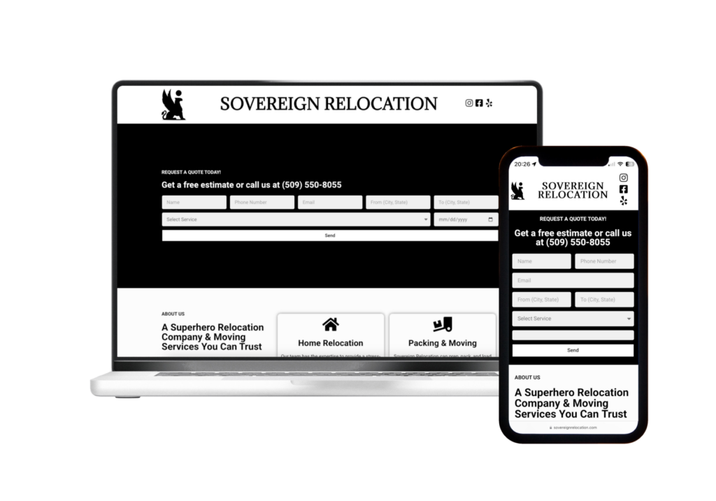 Sovereign Relocation is a moving company based out of Phoenix, AZ with other locations around the US. This is a one-page site designed to capture lead information through the contact form and promote their business services. They wanted a simple, clean layout and provided the logo and desired colors. Sovereign was a brand new business…